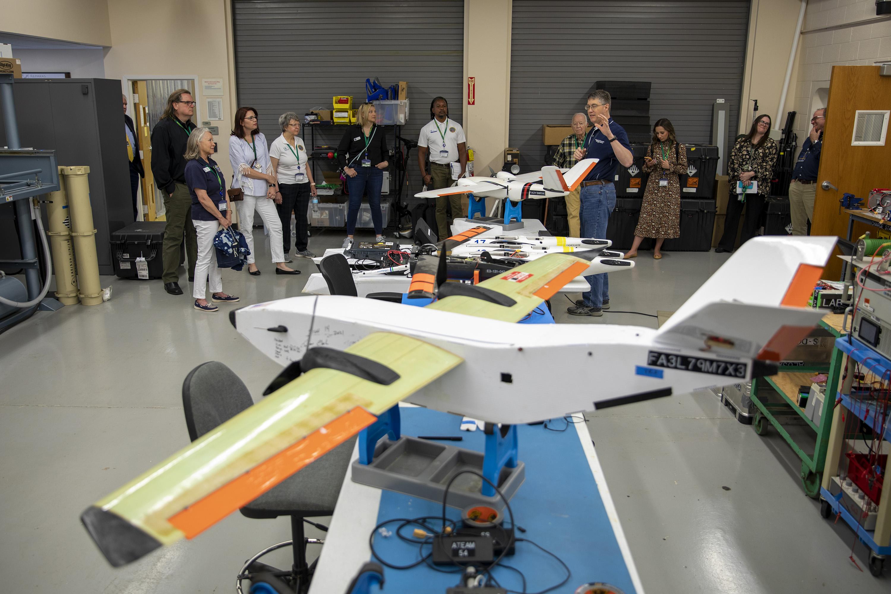 More than a dozen members of the HCAA attended the April 29 briefing. They saw work on building small unmanned aerial systems, research aimed at providing earlier warning of severe storms, a wind tunnel used to evaluate new aircraft designs, a phased-array radar that will be used to train operators, anechoic chambers used to develop acoustic devices, and the GTRI Research Electronic Warfare Truck (GREWT) – a Ford F-550 that supports field testing of aircraft defensive systems.