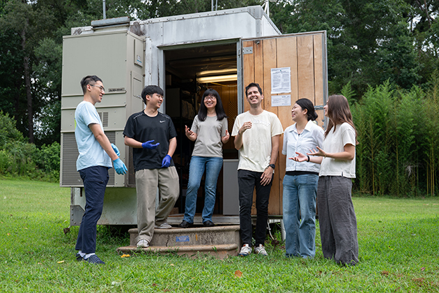 Some members of Sally Ng’s research group in front of the ASCENT trailer (left to right): Evan Liu, Seongbin Jo, Sally Ng, Can Barut, Sohyeon Jeon, and Sophia Hoch.